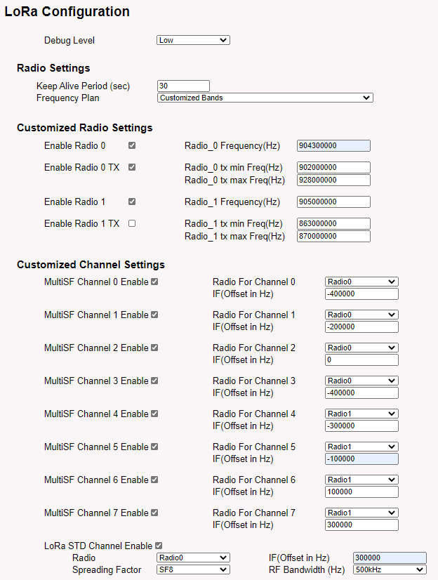 Example of customized channel settings using the US915 frequency plan for the Helium IoT Network