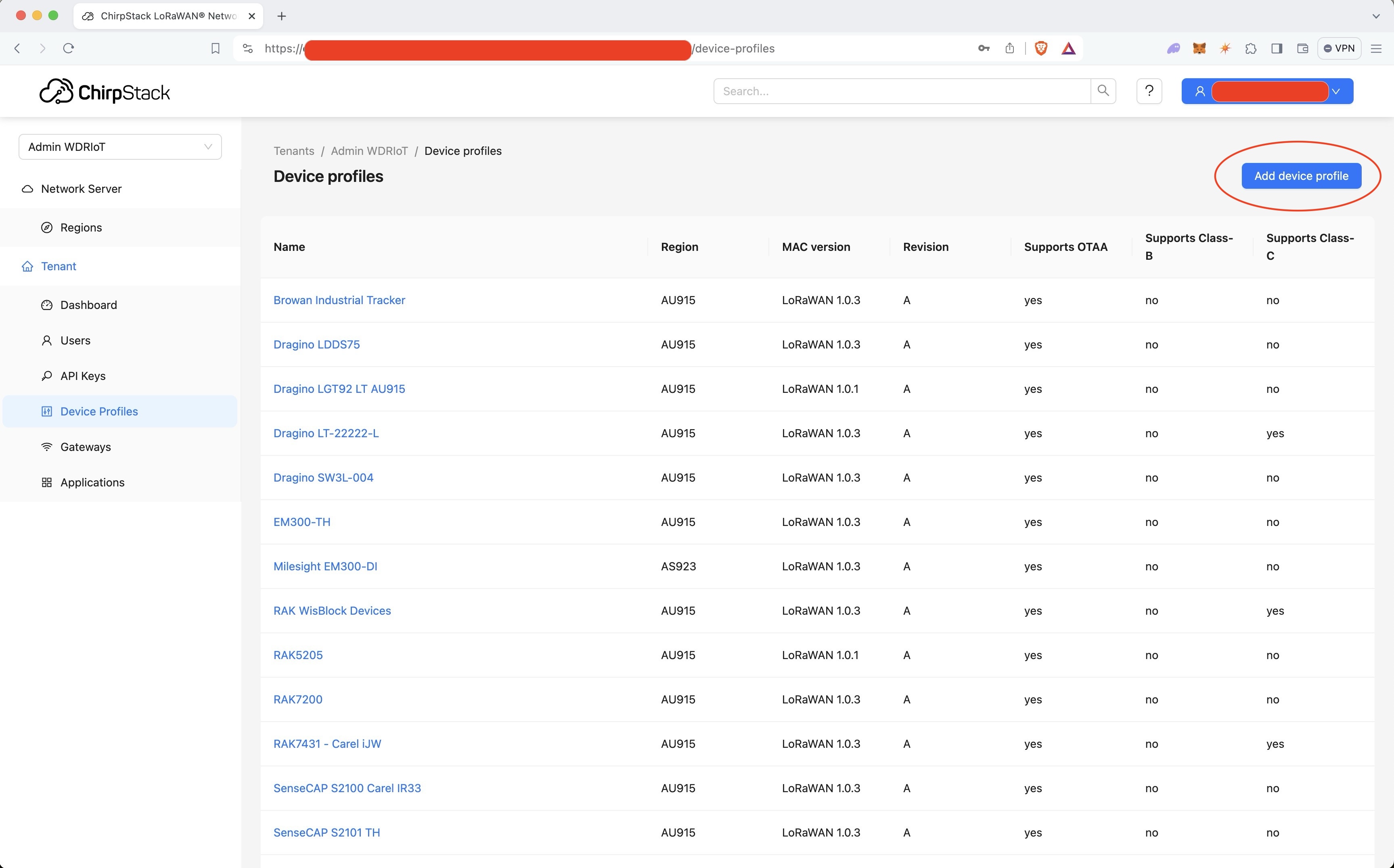Device Profiles -> Add Device Profile