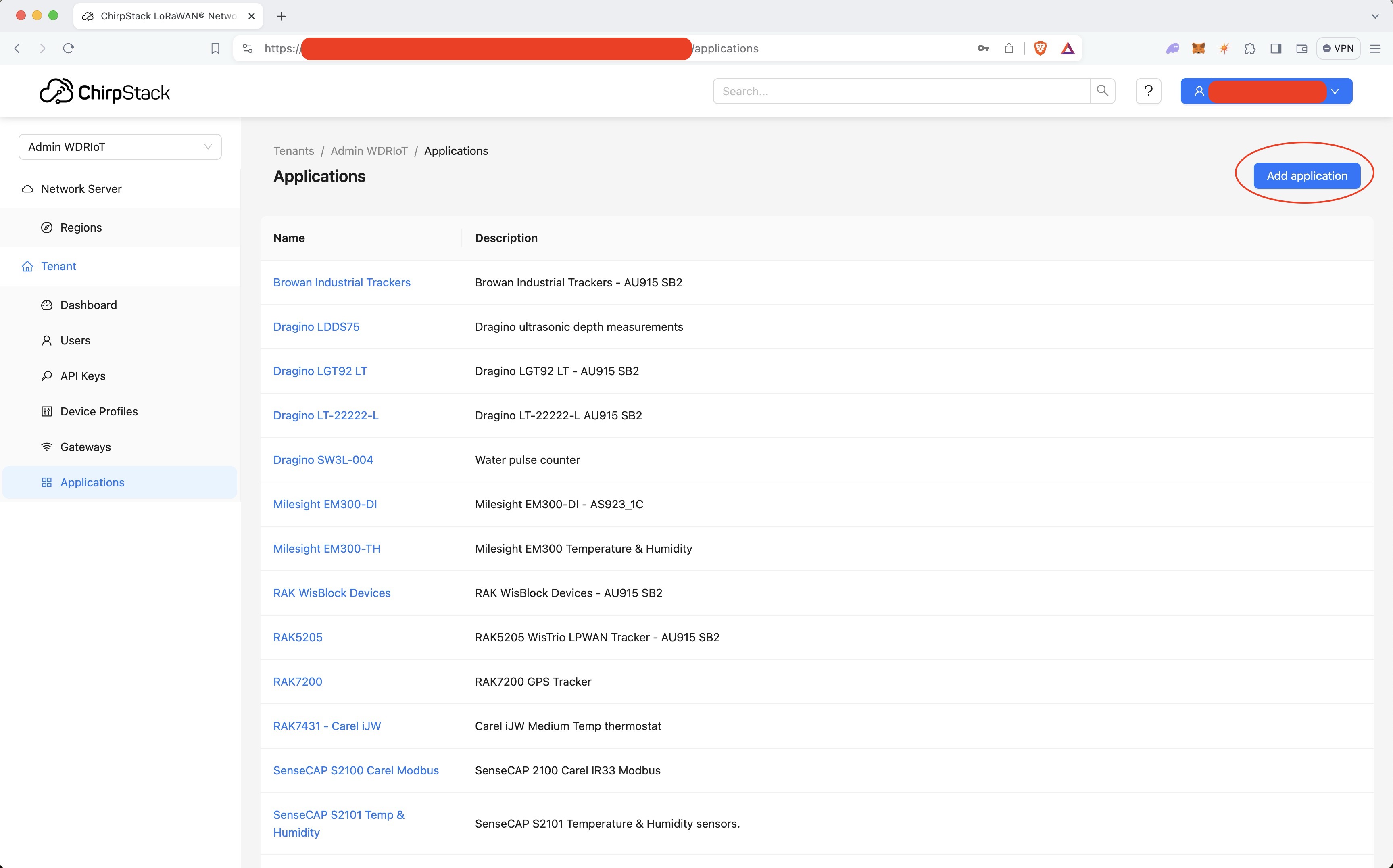 Select your Application and click Add Device.
