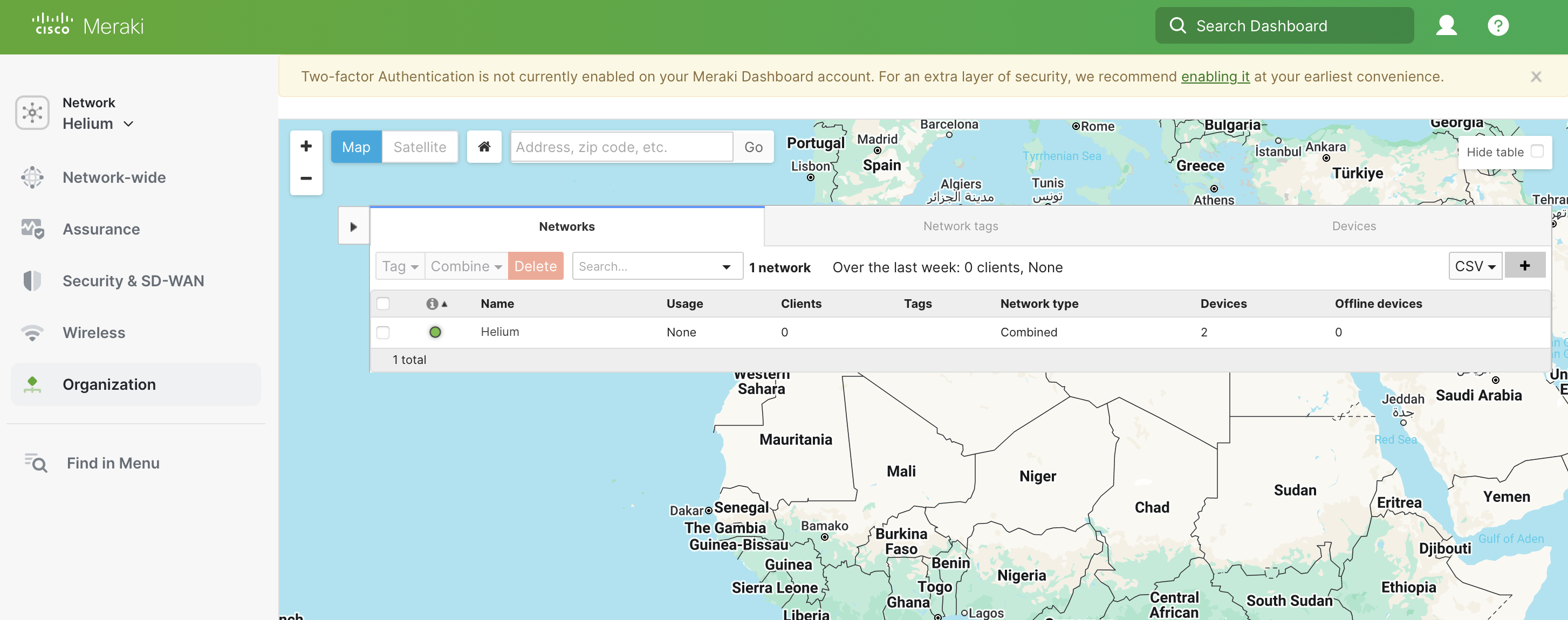 To start login to your Meraki Dashboard in your browser, this will be our starting point for all major steps below