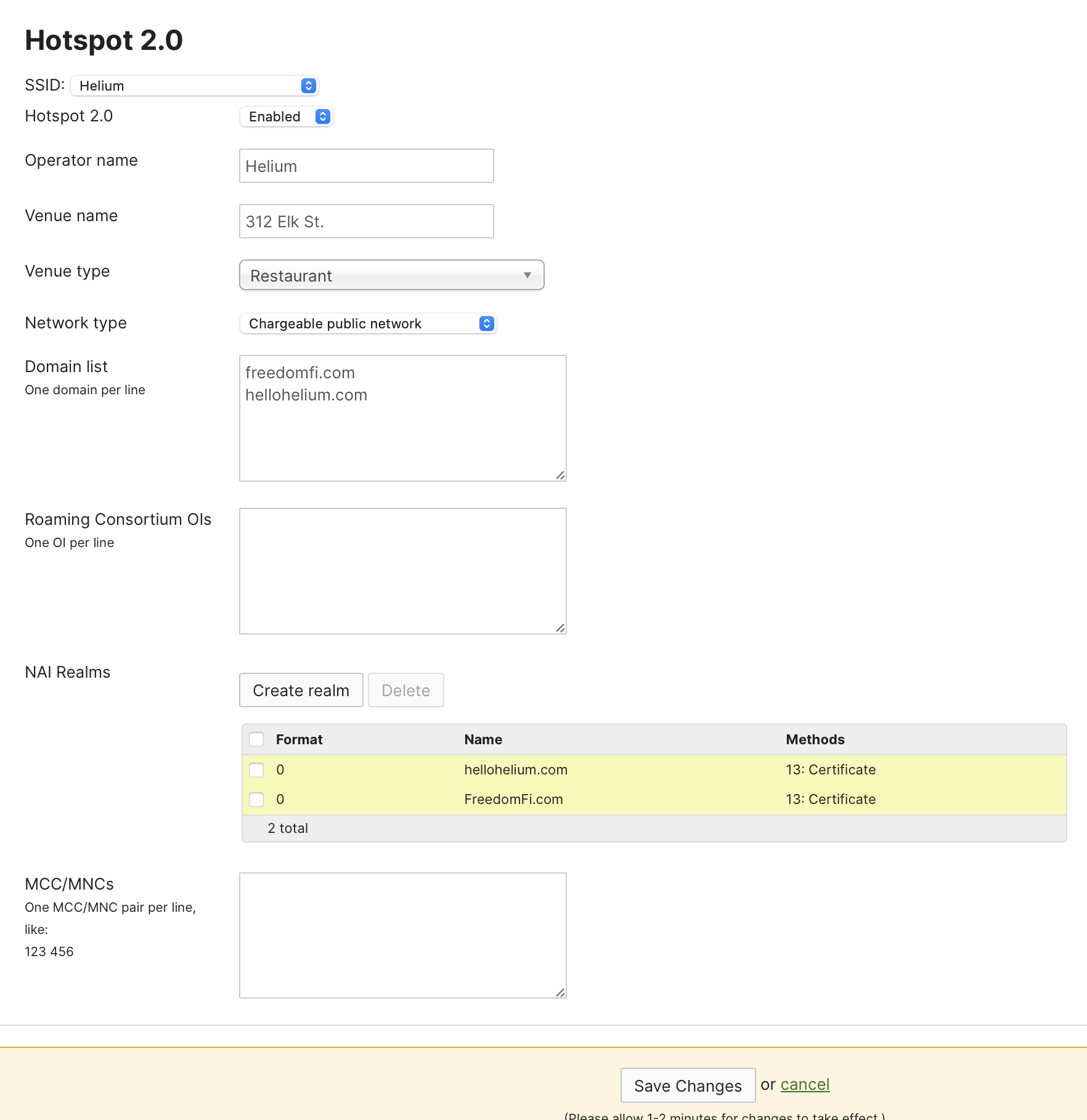 The following steps will configure your Meraki system to broadcast an SSID with the needed Passpoint and RADIUS configurations to support Helium Mobile user offload.