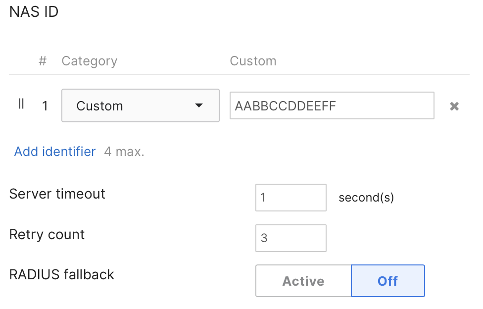 - Change the number 1 drop down for NAS ID to Custom and enter the NAS-ID you got during onboarding